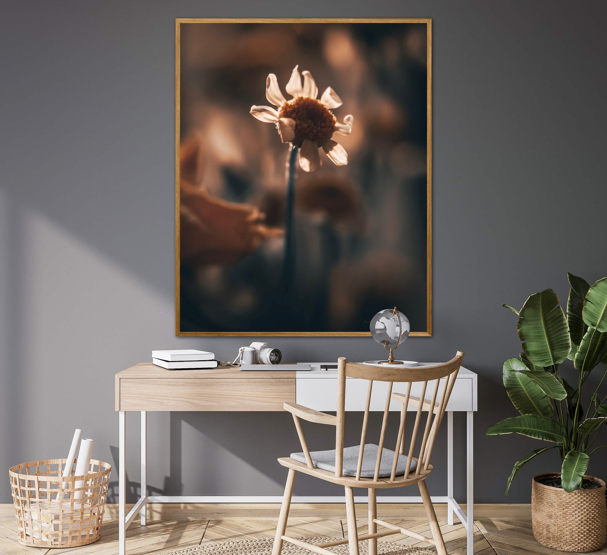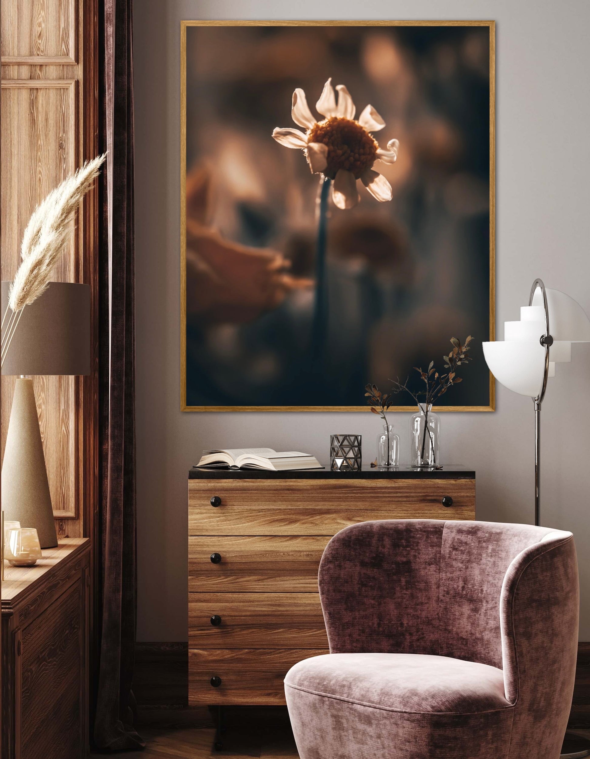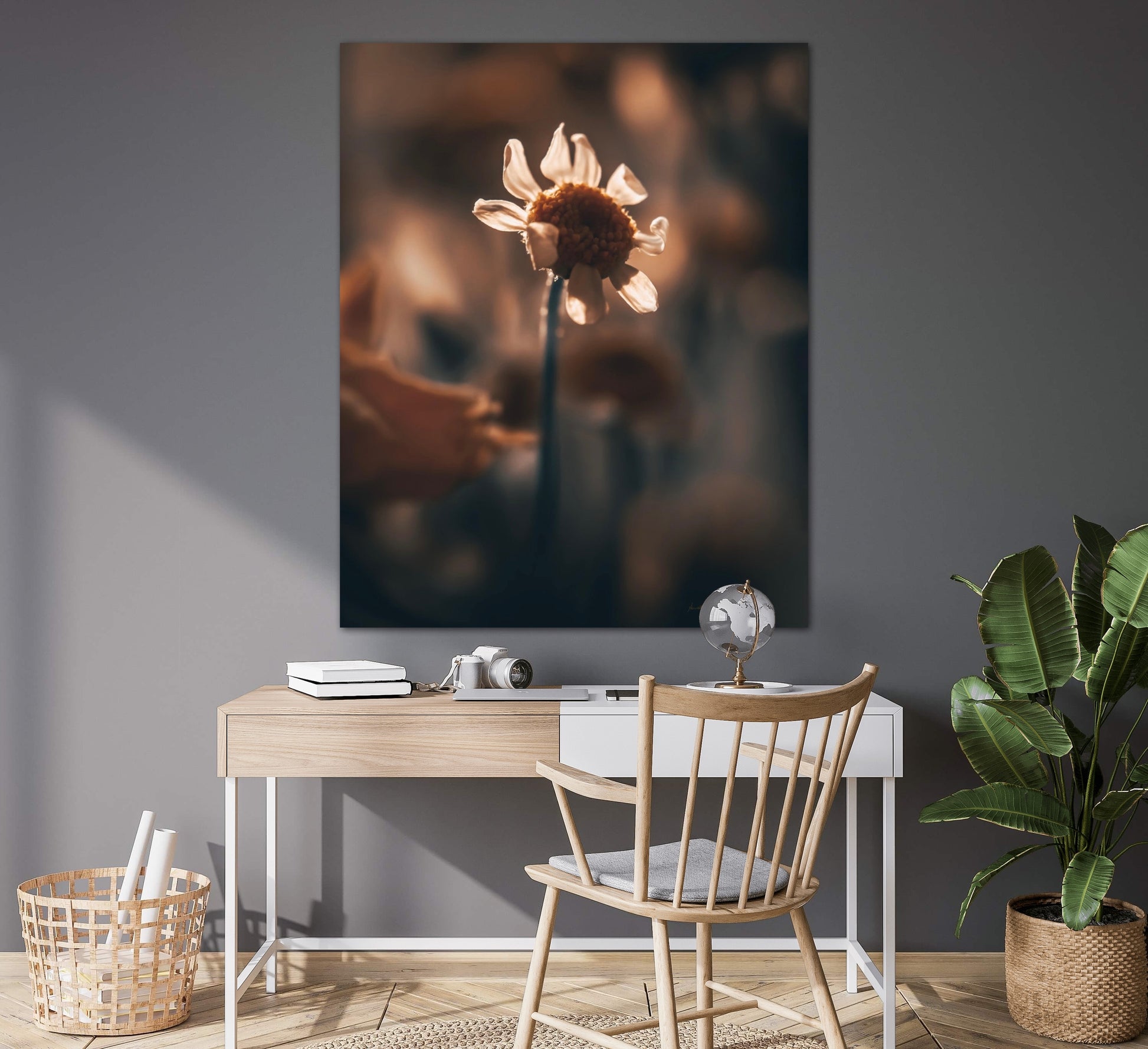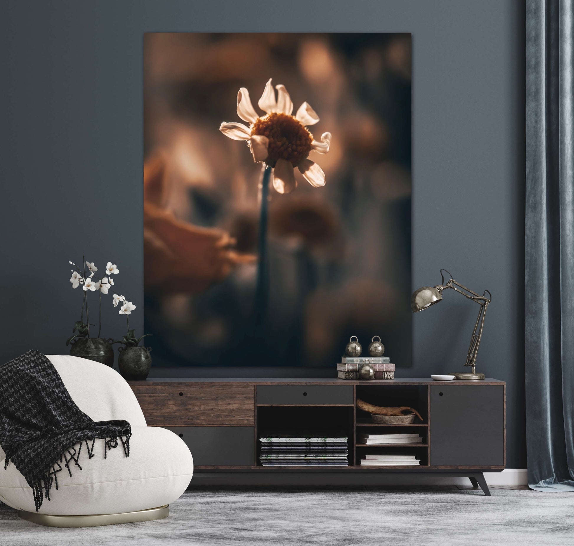 Nydelig vakkert kunstbilde av en liten blomst som er perfekt og uperfekt på samme tid. Så mye følelser i den lille blomsten. Få et nydelig og uttrykksfullt motiv på veggen med dette nydelige motivet.