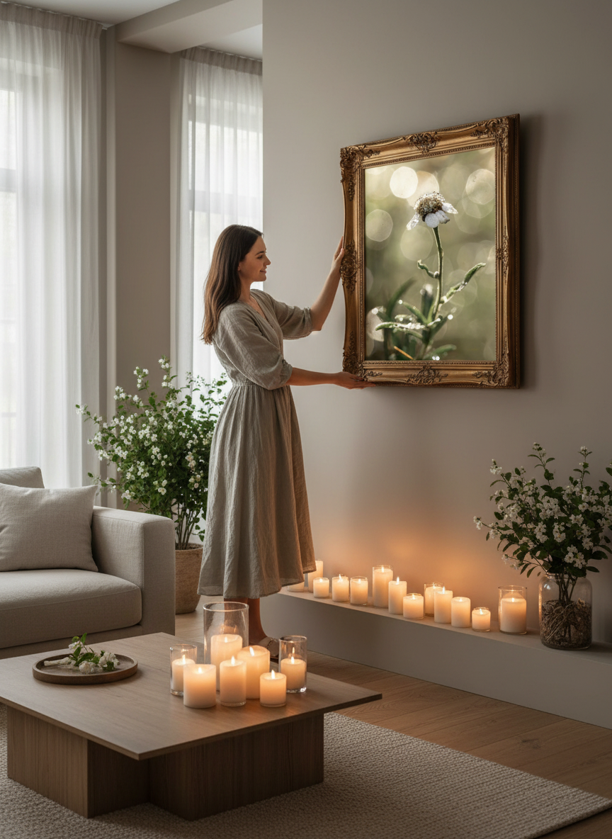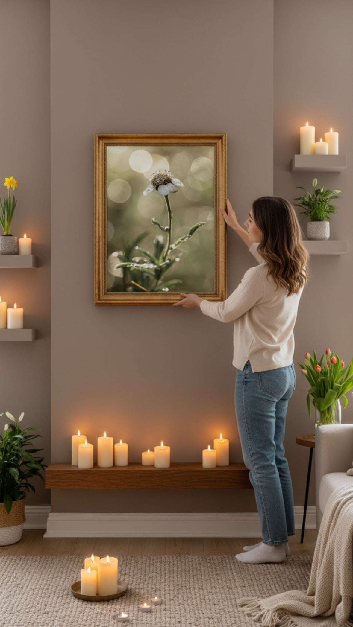 - Inkluderer opphengssett til bildet. Ta av plastfolien på baksiden!