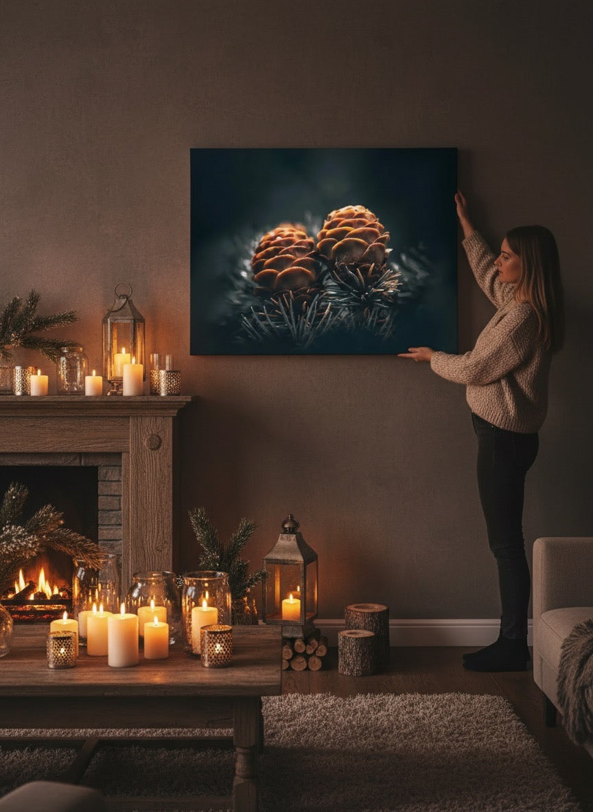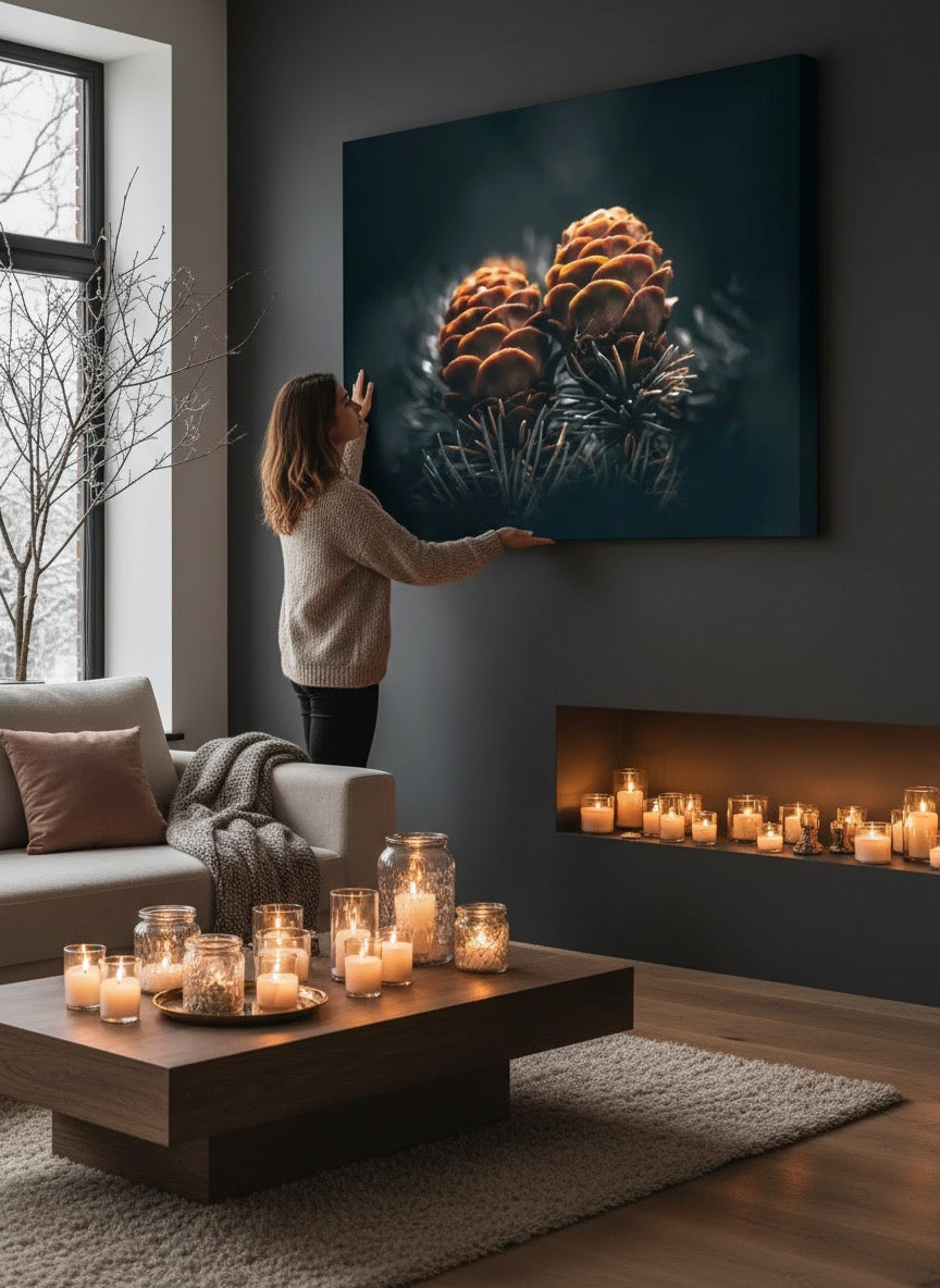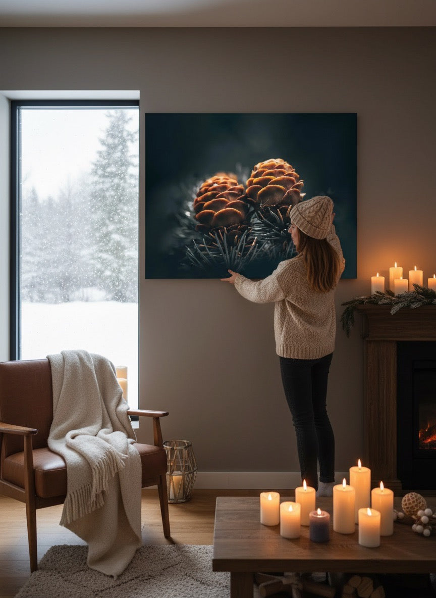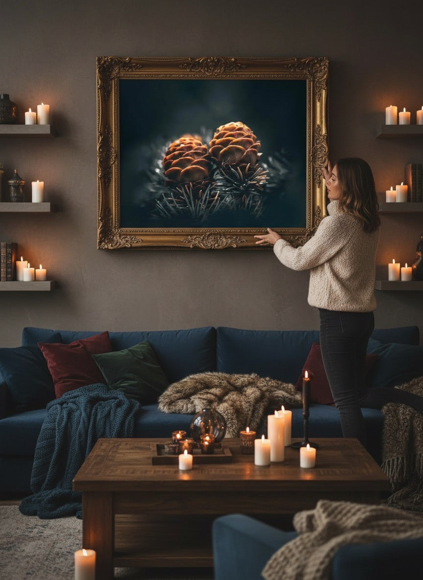 Nydelig kunstbilde av to kongler på en gren, kan du kjenne kjærligheten?