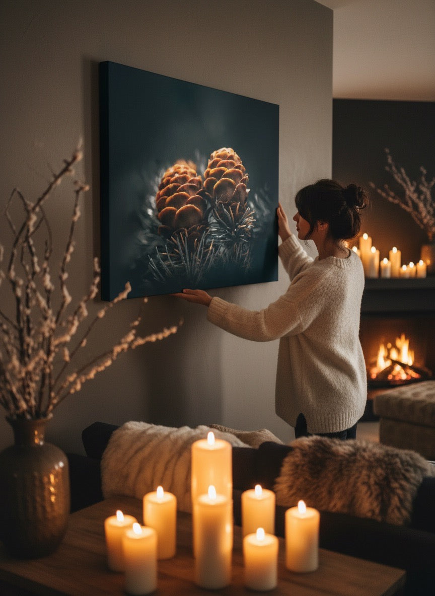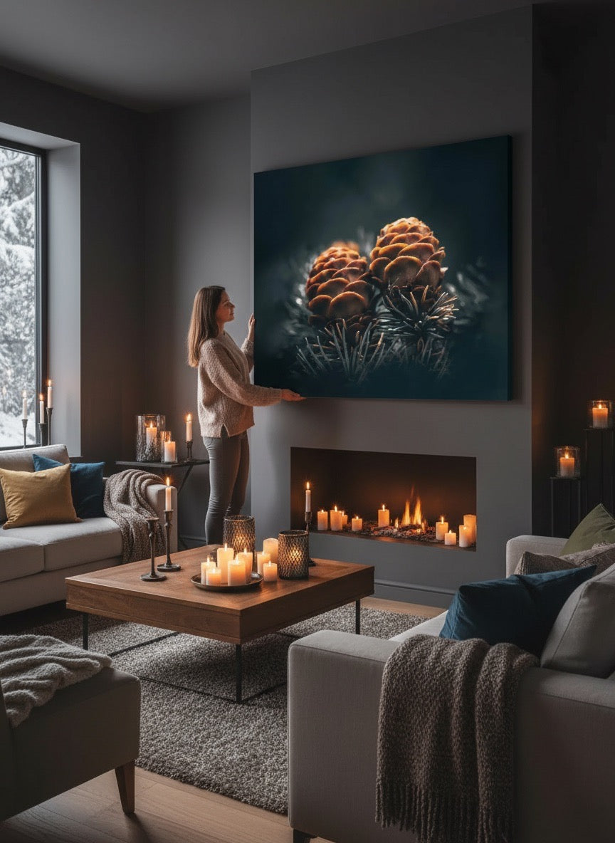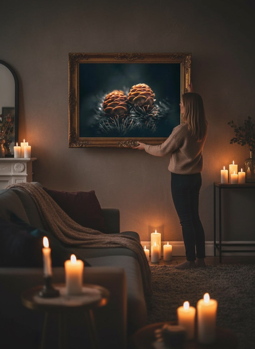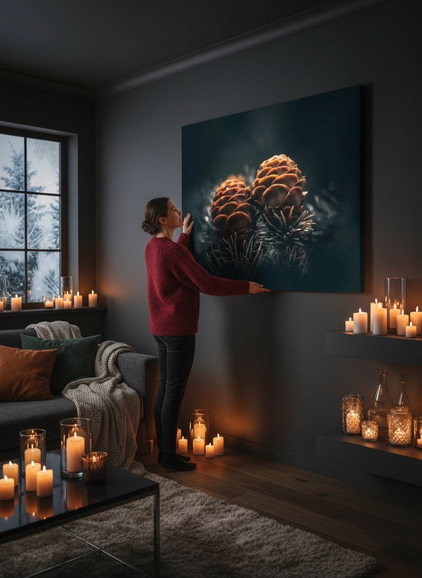 Nydelig kunstbilde av to kongler på en gren, kan du kjenne kjærligheten?